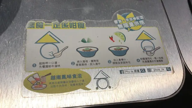 只係略嫌熟牛肉比較似牛腩嘅口感,對我嚟講厚咗小小,我個人就唔太喜歡,不過為咗要食到牛丸同埋生牛肉,我依然會keep住嗌綜合口味嘅。職員喺客人點餐之前,都會每人奉上九層塔,鵝蒂,香葉,青檸,辣椒同埋芽菜,跟足枱面上面嘅指示放入湯中攪拌,最有越南風味嘅食法就係咁享受到啦~