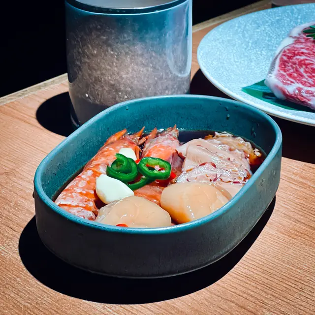 肉類海鮮選擇豐富,亦有唔少韓式小食🤓韓國小菜都有好幾款,最鍾意係佢哋嘅用芝麻醬汁調味嘅蓮藕片,幾特別🩶
