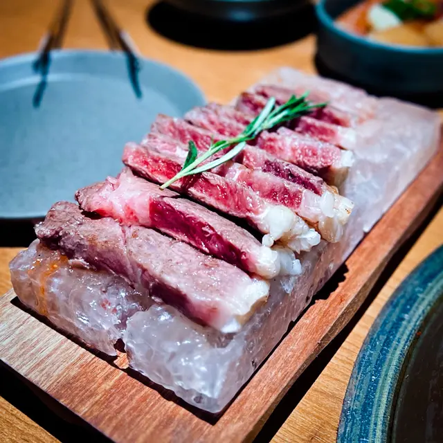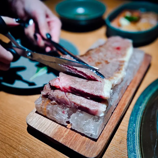 完成後就會放喺鹽磚上,令鹽分自然滲透晒入去🧂和牛入口即溶,味道濃郁💕
