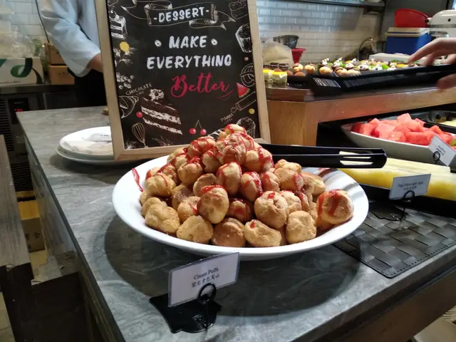 選了幾款甜品,當中有個一層層朱古力做面的最為吸引,朱古力味濃,甜度適中,忌廉泡芙也非常美味。
