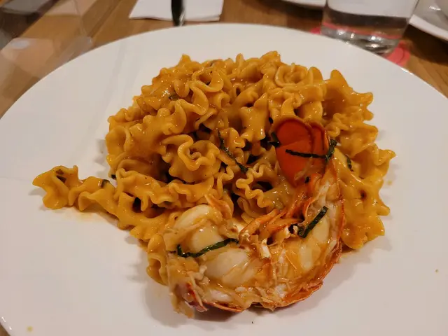 意粉外型係扭麻花的樣子,根本就唔係正常扁平意粉的樣,有點…被騙的感覺。話明經典應該會唔差…但原來唔係… 麵質唔彈牙、鞋口、又唔掛汁,龍蝦味更加完全欠奉,不規則又長的意粉形狀好難吮入口。