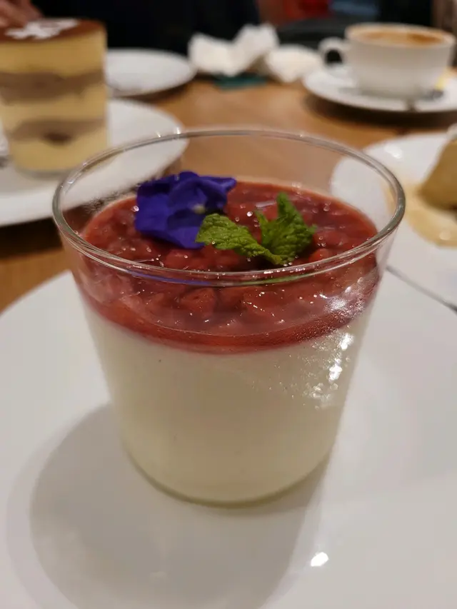 見到雲呢拿籽,但其實有溝到少少檸檬嘅士多啤梨意式奶凍,口感軟軟,好味道。