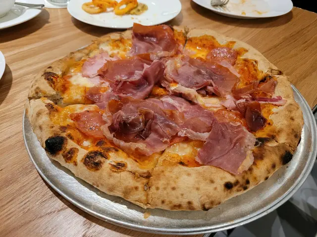 呢度出名薄餅,所以叫返個食下。原本諗緊食4色芝士定肉肉Pizza,經經理介紹後就決定要呢個 。Pizza 有幾款火腿鋪面,餅底夠香氣,肉肉夠咸香,但口感十分韌。