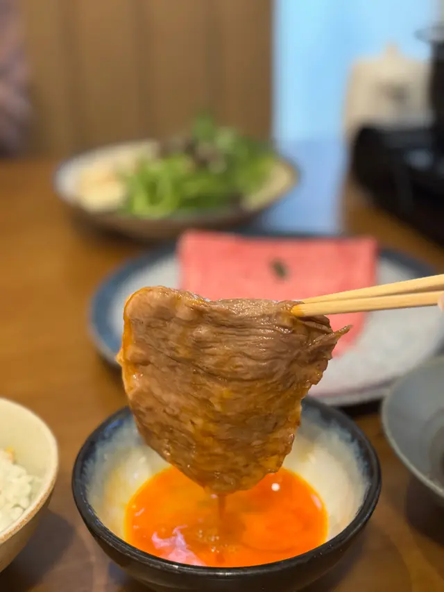 配上日本蘭王蛋 🥚蘸蛋漿後和牛更加軟嫩😋😋試完店家精選嘅3款部位後,可以自選第4款最愛嘅和牛部位!