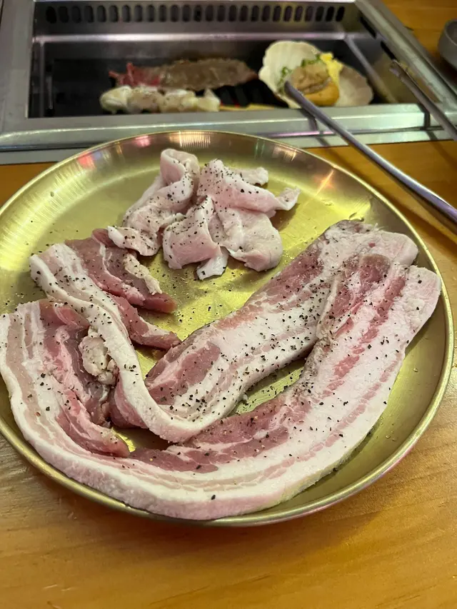 上到枱好靚仔,睇落好新鮮啲肉亦都係鮮紅色唔係出面變曬色既肉😎牛舌心好厚身,燒完之後好Juicy好好食,澳洲和牛佢可以揀唔同嘅汁今次我哋揀咗蔥蒜,燒出嚟加埋個蔥蒜汁超級夾,再點埋餐廳特製嗰幾款醬汁,真係要添多幾碗飯先得。帆立貝都係好大隻,佢另外加多一小嚿牛油,燒出嚟特別香,燒完入面仲係有好多汁,好正。
