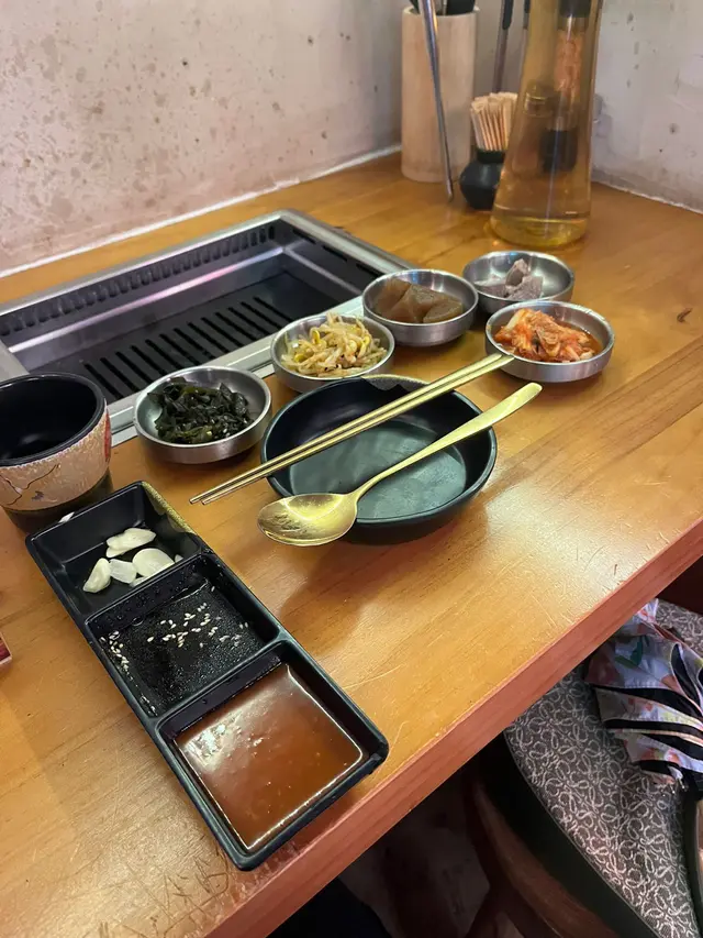 店員一開始就遞上幾款前菜,有泡菜海帶芽菜仲有麻醬牛舌等等,全部都係開胃菜❤️。我仲叫咗個泰式生蝦,佢係刺身級別,加埋個泰式醬汁超級好食開胃。