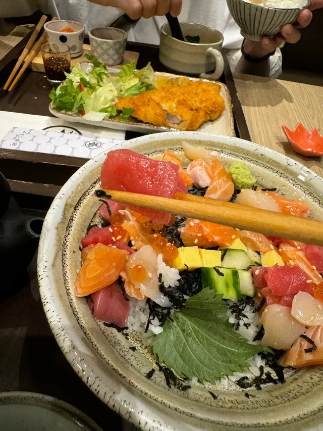 有三文魚、吞拿魚、帶子、三文魚子、甜蛋、青瓜等等,呢度啲刺身超級新鮮,海鮮味濃,肉質鮮甜、嫩滑,而且份量都唔少,真係喜出望外!