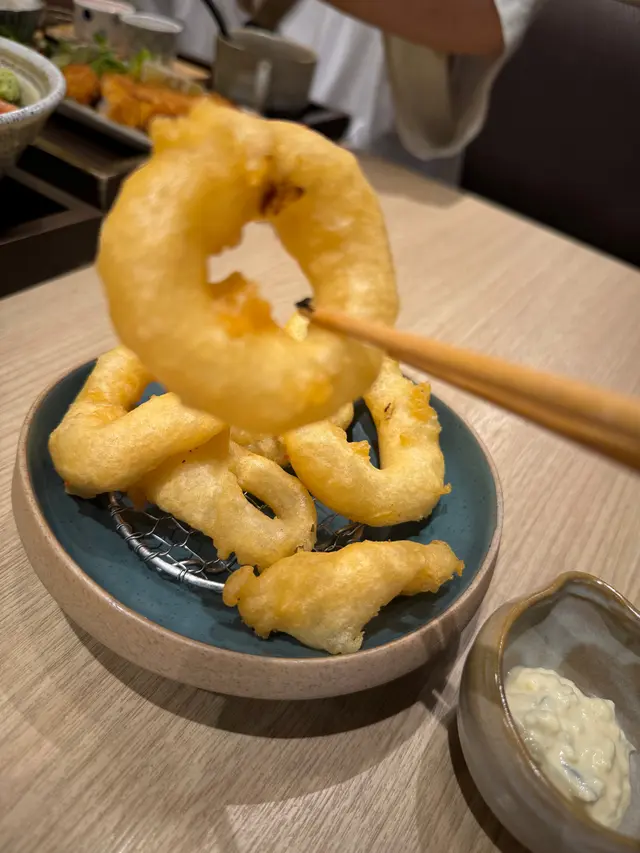鬆脆嘅外皮內,係嫰嫰彈牙嘅魷魚圈,加上沙律醬,非常美味。