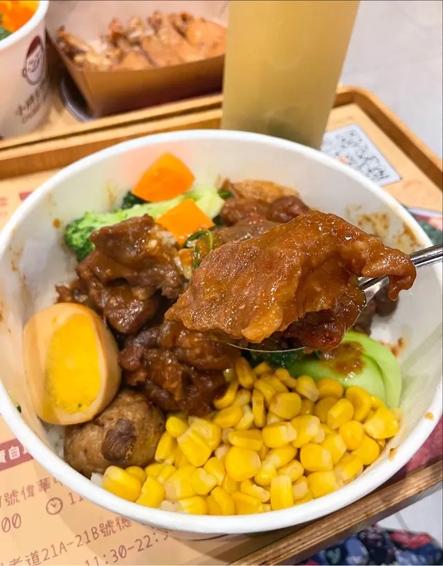 💜 紅燒牛頰肉便當 跟餐配 鳳梨抹茶 $76