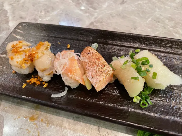 仲叫左幾件蟹油蒜香帆立貝、海鹽燒左口魚邊、炙燒三文魚壽司,炙燒三文魚壽司,味道唔錯,可以一試,其他的冇令我留低深刻印象。