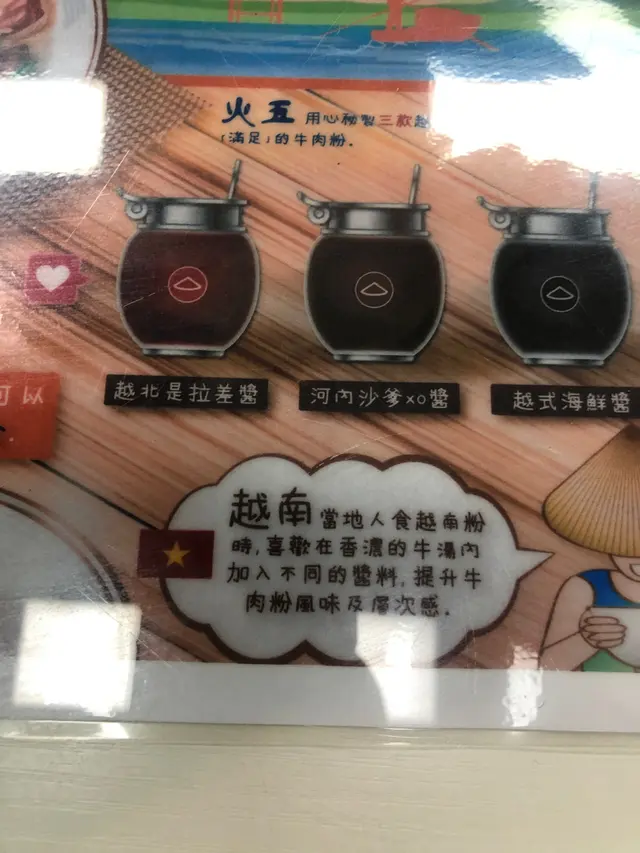每張枱上面放置左佢哋秘製嘅醬汁,有越北是拉差醬,河內沙嗲XO醬同埋越式海鮮醬,好吸引。呢度用半自助形式,可以自己去斟水。