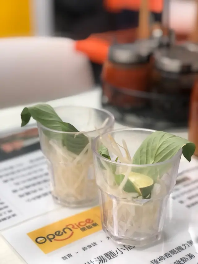 我同朋友各點左一個粉麵,店員隨即每人派咗啲芽菜同香葉,而每張枱都有辣椒,適合唔同人嘅口味。