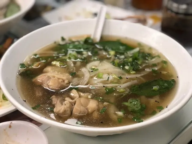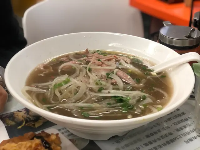 朋友食嘅生牛肉粉,呢個價錢冇諗過份量咁多,連生牛肉嘅份量都好多,湯底香濃,生牛肉嫩滑而且冇筋,再重口味啲嘅朋友可以自己加啲醬汁,好抵食。
