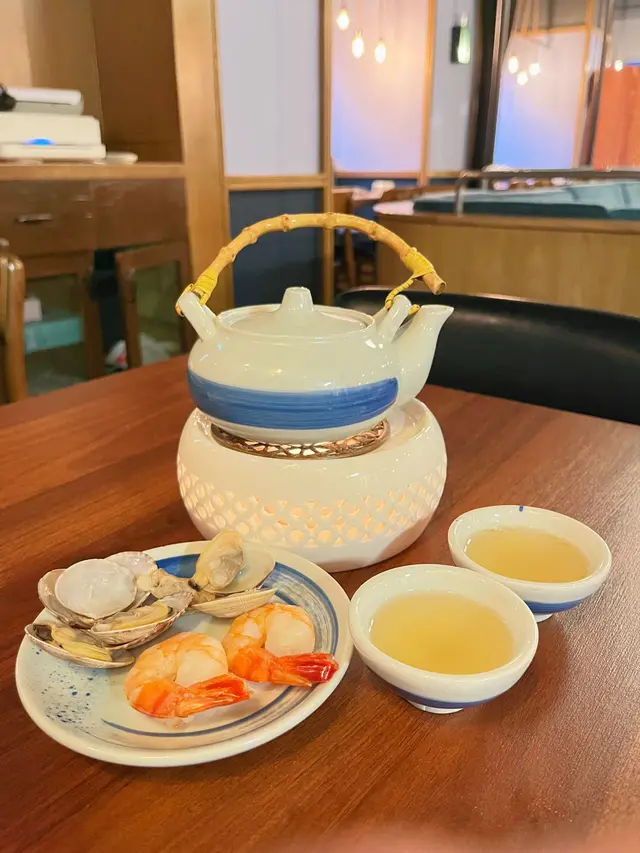 首先餐廳上左個茶壺海鮮湯,顏色清澈呈金黃色,鮮甜味十足,味道唔會好咸飲落好舒服