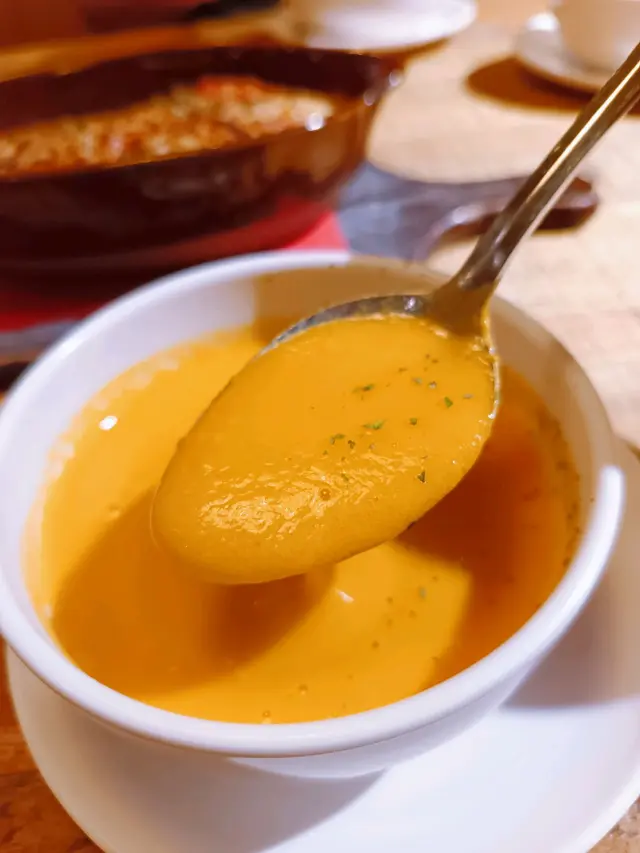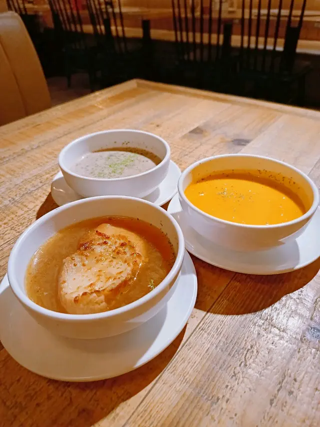 主食升級套餐包括餐湯和餐飲,點了幾款餐湯,法式芝士洋蔥湯、香濃南瓜忌廉湯和忌廉蘑菇湯,製作認真,湯底濃郁,味道各具特色。