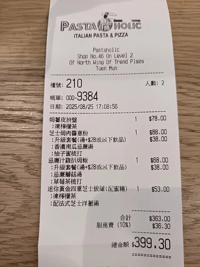 薄餅焗得酥香,四重芝士的融合,濃郁而不膩,淋上蜜糖,鹹甜味道互相配合,令人回味。