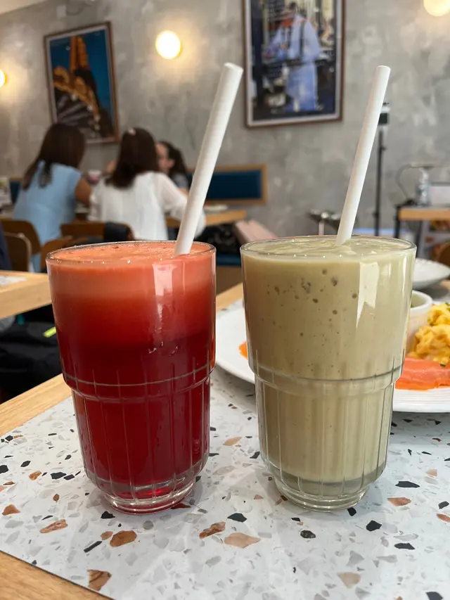 朋友點左一杯紅菜頭蘋果紅蘿蔔汁🍎🥕,佢話好fresh 好好味,而且好符合佢崇尚健康既生活方式。