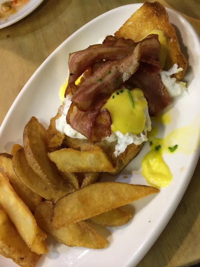 最後就係egg benedict,我覺得呢間餐廳將蛋發揮同埋配搭得好好(淨係食蛋都食到好飽lol),有煙肉同份量好足既薯條,而上面的蛋黃汁就偏甜,還可以接受。不過感覺賣相就一般喇,因為通常其他地方的egg Benedict望落去都會砌到好靚的,而呢度就....