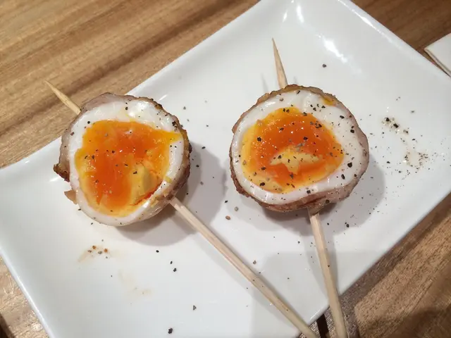 呢個蛋係用煙肉包住既,成個配搭令件事好新鮮。食落唔算太咸啦,都OK的!雖然係兩啖就食完,但價錢唔算貴,值得一試。