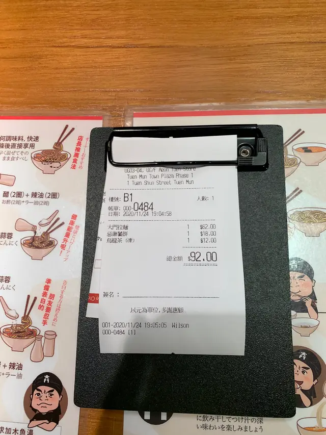 我一個人叫咗三樣嘢,一個拉麵,一個薯餅小食,同埋烏龍茶!
