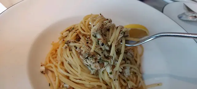 蟹肉白酒汁意粉:鮮味蟹肉沒帶一點腥味,份量也多,入口每啖意大利粉均沾上蟹肉,滲出點點蒜蓉和檸檬味道,感覺消爽。