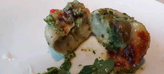焗蘑菇 :新鮮蘑菇不因烤焗而失去水份,仍然十分濕潤。濃厚蘑菇味道,加入青蒜醬、橄欖油和芝士烤焗,還有火箭菜、芝士碎和車尼茄佈滿一碟。感到欣喜的是未曾嚐過如此甜脆的車尼茄。