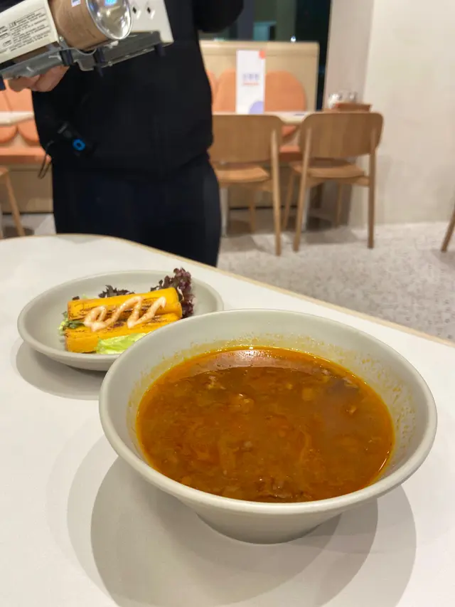 我哋兩個套餐亦都加咗錢升級做套餐,會送羅宋湯同埋前菜,前菜係用火燒過嘅玉子燒,味道有驚喜正!