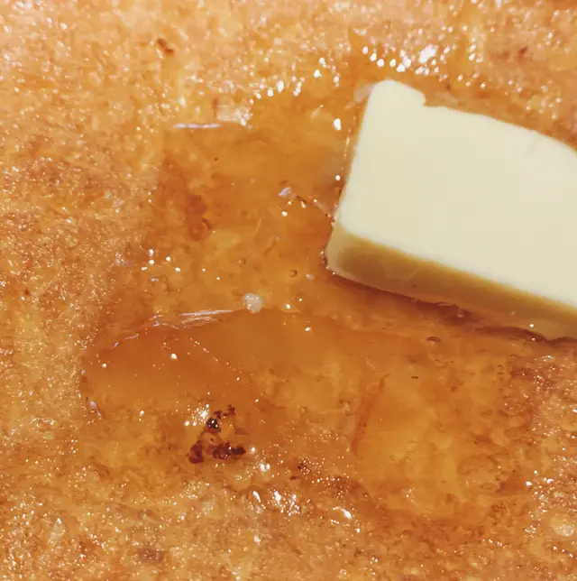 啲醬同牛油平均溶喺個包上面
