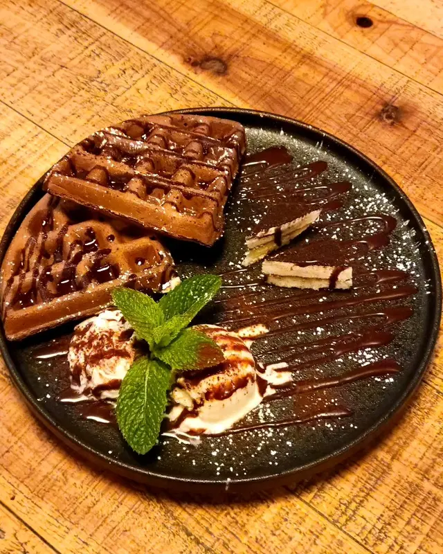 甜品 - 朱古力窩夫 & 四重芝士薄餅配蜜糖