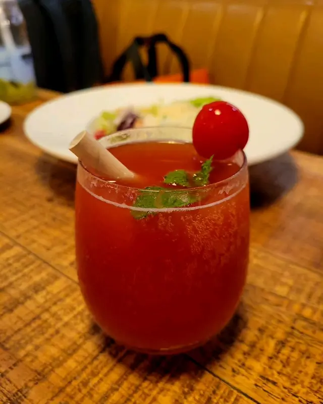 水果茶甜度適中 柑橘類水果的酸味讓人很開胃 蕃茄醬梳打算是比較少見的飲料 卻意外的好喝 非常醒神的配搭
