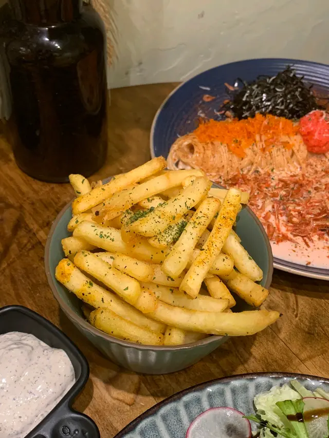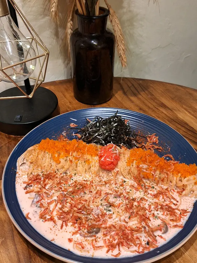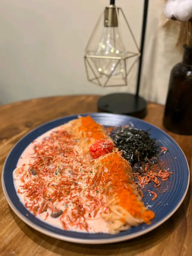 呢個意粉嘅賣相就已經非常吸引,見到就已經非常有食慾,意粉規律地捲放係中間,兩邊分別係明太子櫻花蝦醬汁以及紫菜,成個意粉好吸睛,好適合打卡。