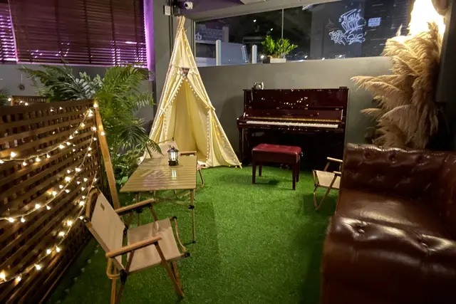 新店以露營為主題,所有桌椅及裝飾佈置都別出心裁,予人感覺彷彿置身營地,實在是香港難得一見。