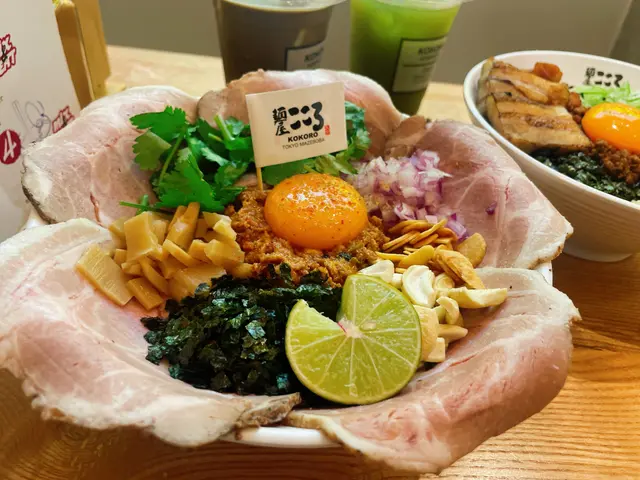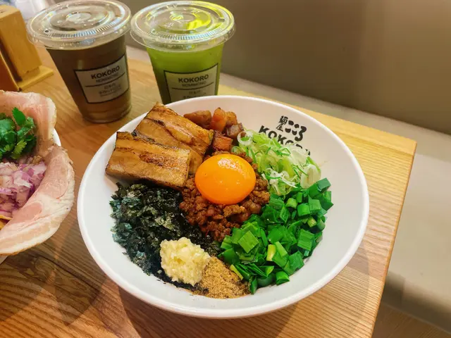 🌻 肉の地獄-山椒胡麻冷撈麵,好好味!賣相非常靚,有叉燒片,中間有生蛋黃,側邊伴啲辣肉碎、竹筍、紫菜碎、紅洋蔥、炸蒜片、芫荽、腰果,擠埋青檸,開胃又香口,而且唔會太辣,剛剛好啊🌼