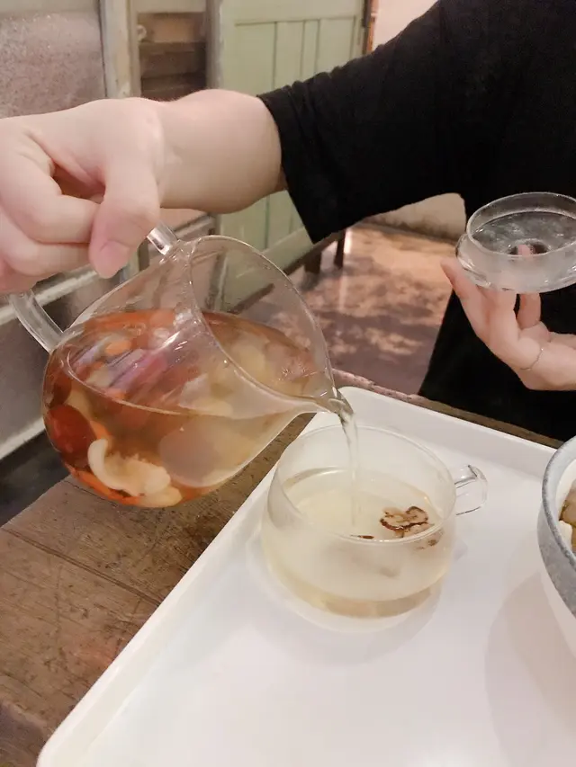 飲品有玫瑰latte、有陣陣玫瑰花香、不錯;花茶有元肉、紅棗、十分適合女生飲用
