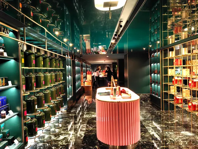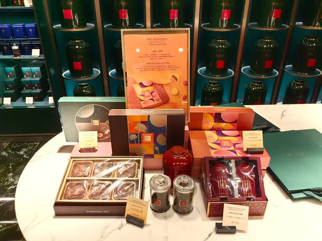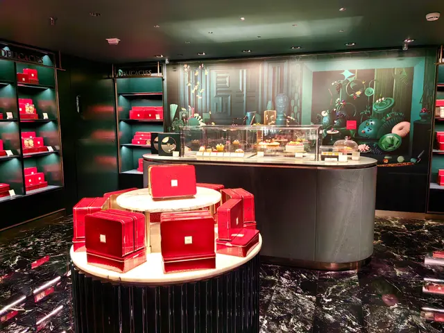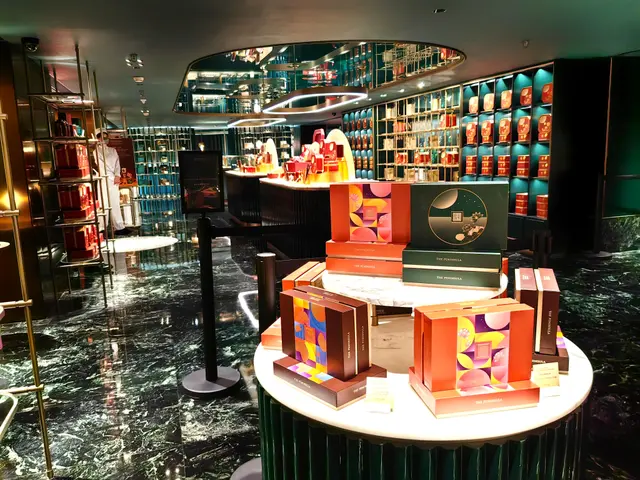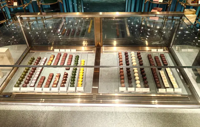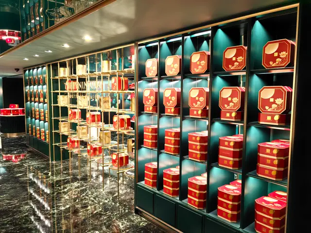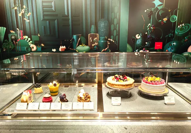 半島餅店設於酒店地庫,感覺高格調,優雅舒適、集餐飲與品味於一身的全新匯聚點。其顏色設計以墨綠色為主調,配搭金色支架,奢華獨特,店內典雅的法式裝修,營造寫意自在的氣氛。