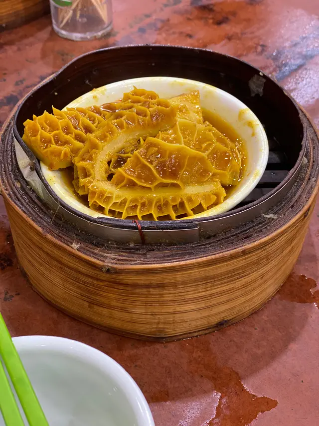 擠迫如此,點心阿姨仍然努力拿着新鮮的點心叫賣,點心款式不算很多,但基本的也有,我們點了蝦餃,皮比較厚,味道也沒有特別。腸粉也一樣,一般。精彩的,有金錢肚,非常新鮮,加上特別的咖喱汁,很好味。一定要讚流沙包,黃色的奶皇,爆汁,食落去亦十分有沙沙的感覺。燒賣也很不錯,顏色和味道也很特別。