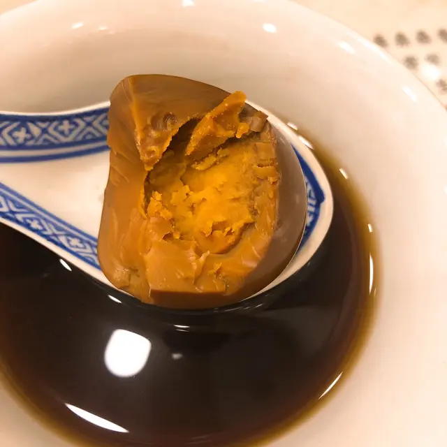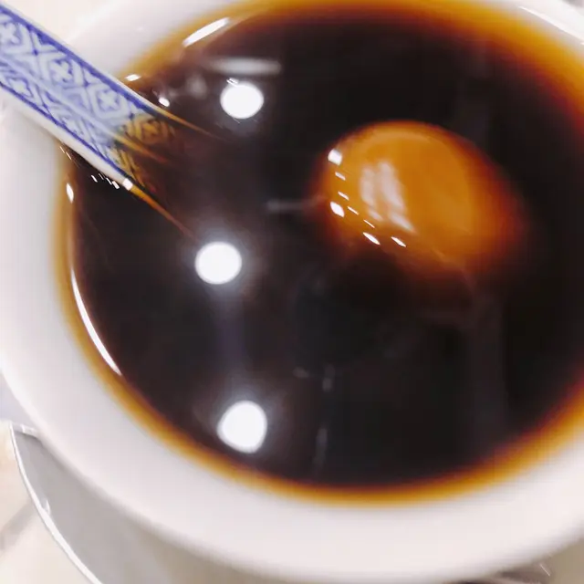 桑寄生雞蛋茶$34。 其實好細碗,但第一啖入口好香,其實我一直唔知到底桑寄生茶係用咩材料煲,但就都好鍾意佢既味,甜度都算識中。重點係隻雞蛋真係好好食!連蛋黃都入味到變左啡色,好似茶葉蛋,但有茶味,但又冇咸味。好得意!平時飲桑寄生蛋茶果隻雞蛋都只係一隻白色雞蛋,冇茶味。但呢隻真係好出色!