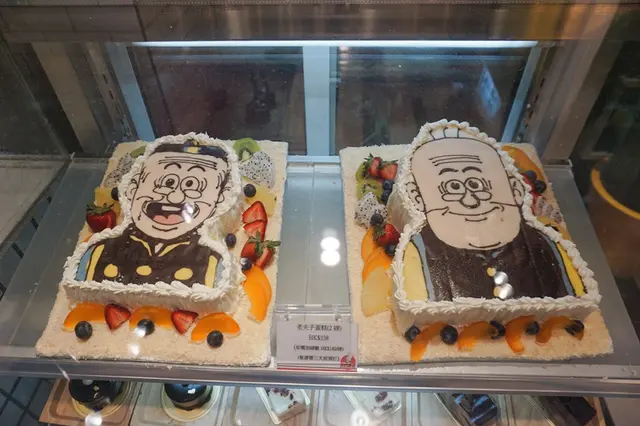而店外亦設有蛋糕櫃,少不了老夫子造型的懷舊雜果忌廉蛋糕,
