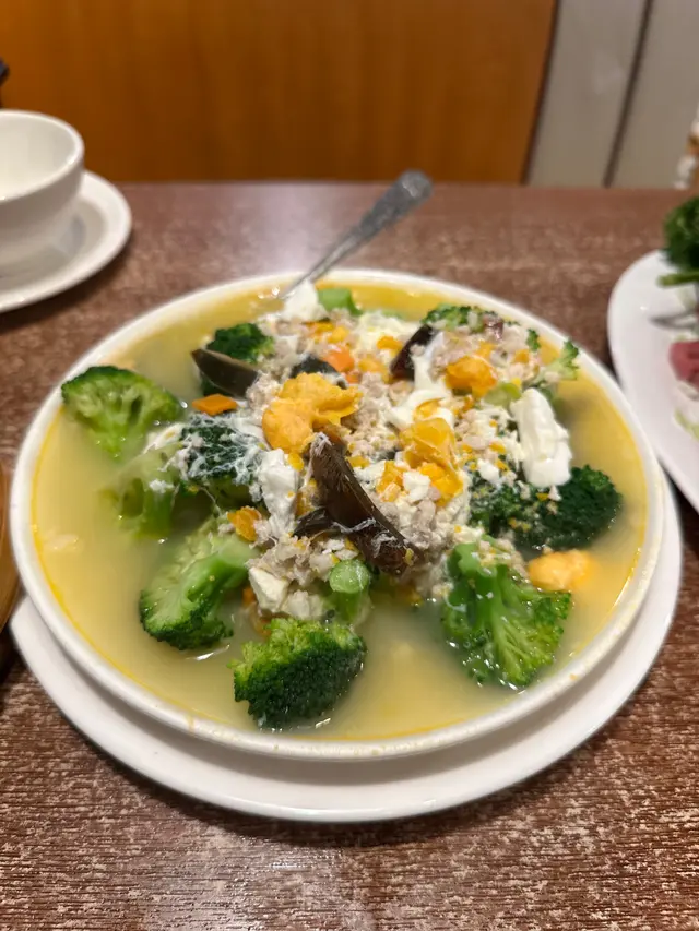 金銀蛋浸時蔬,時蔬選擇了西蘭花,皮蛋的醇厚與鹹蛋的鹹香,與西蘭花也是不錯的配搭。