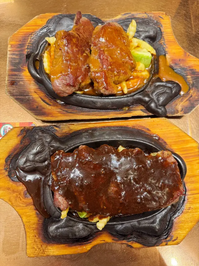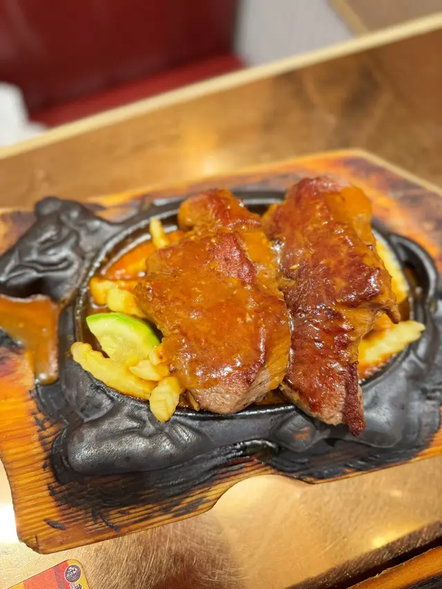 超大塊牛柳,好抵食👍,七成熟剛剛好,肉質軟嫩,中心微粉紅,咬落有肉汁,搭配熱騰騰嘅鐵板,再淋上蒜蓉汁,香而不膩。