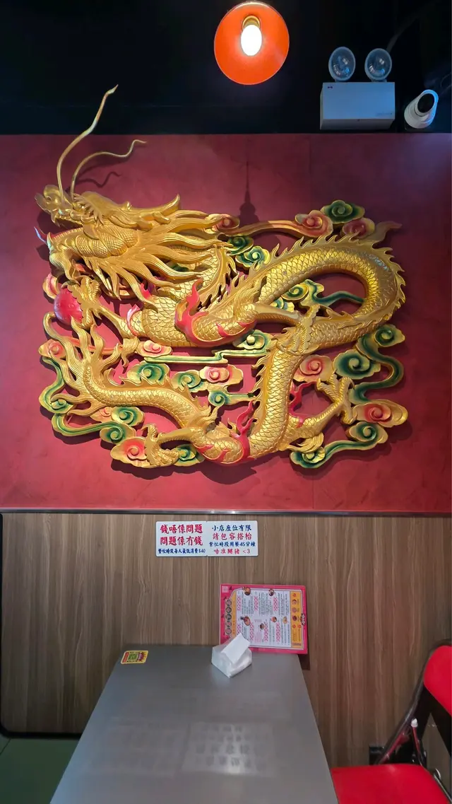 餐廳門口有霓虹燈十分吸引,內面也有以前酒樓龍鳳牆,好多打卡位。而餐廳播放著香港80和90年代 時代曲🎶好好聽十分懷舊☺️
