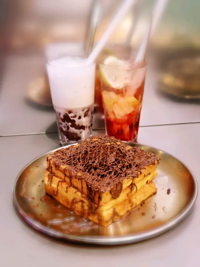 這個超有創意又邪惡嘅多士🤩好有驚喜。多士炸得金黃而上面鋪滿香脆金沙和朱古力醬,中間也有流心🍫朱古力醬,本身好喜歡食金沙朱古力,作最後甜品非常滿足😋。