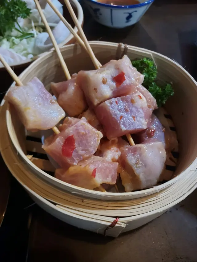 店員特別推介我們的秘製格格肉, 即豬頸肉, 味道果真相當特別, 即使在鍋中泡了良久, (因是豬肉)