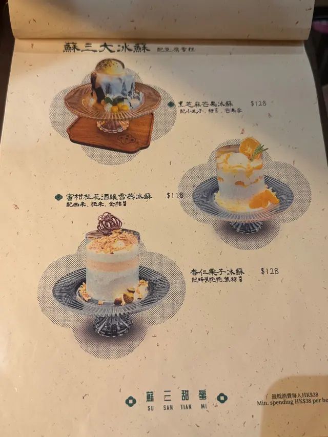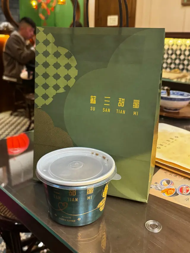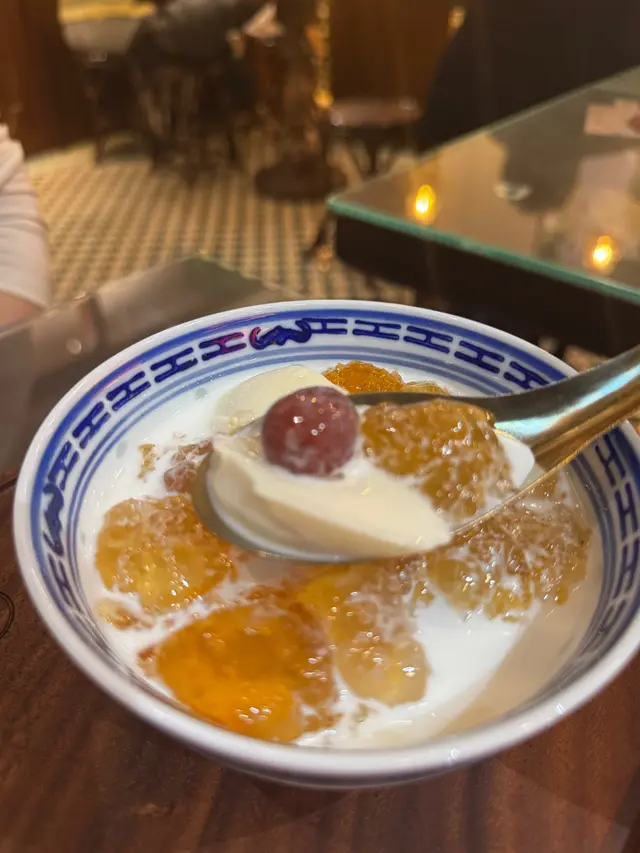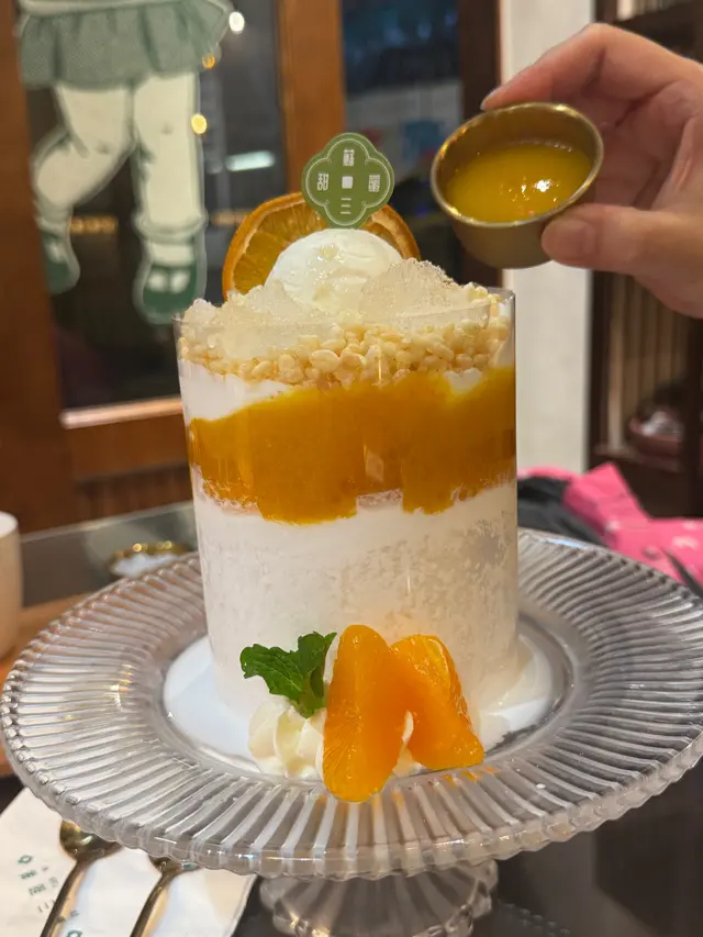 很有儀式感的蘇三大冰蘇系列,是令人高興的甜品,因為看到鄰座的幾個人在歡呼,我們幾個也點來趁趁熱鬧,這個蜜柑桂花酒釀雪燕冰蘇,就是加了大量配料的沙冰,綿綿的沙冰,有淡淡的椰子味,配合酸酸甜甜的果子糖漿、雪糕等。