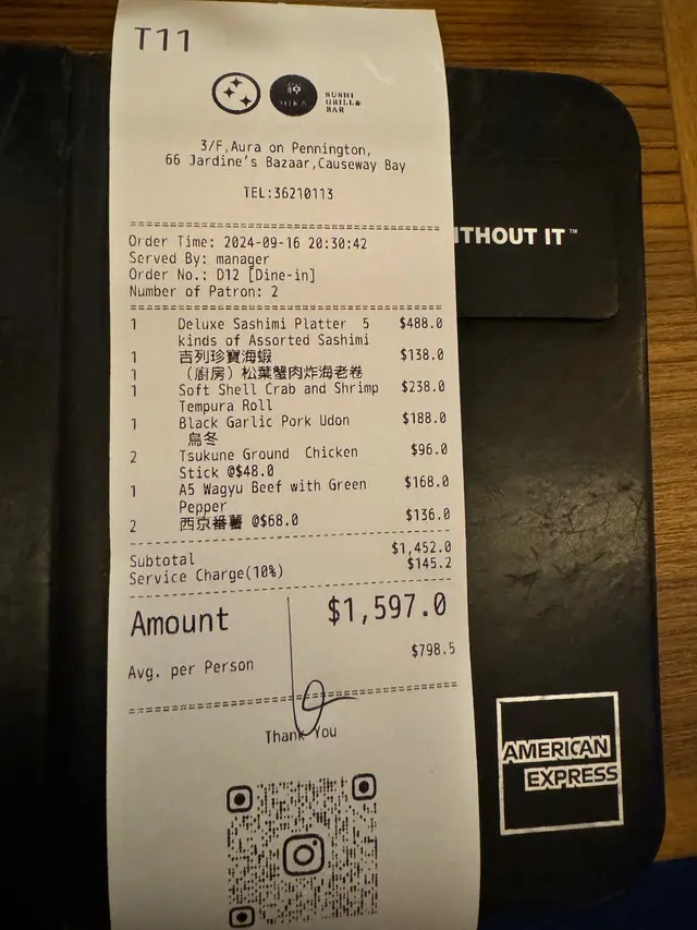 我留下了深刻的印象。。。。 Crazyhoi627Level 32024-09-18245 views Follow 吉列珍寶海蝦外表金黃酥脆,裡面保持鮮嫩口感有兩個醬汁選擇,一個是沙律醬一個是類似燒汁松葉蟹肉炸海老卷新鮮松葉蟹肉和彈牙的海老結合,搭配一點酸甜醬汁,係好微妙嘅組合刺身五點新鮮。人最鍾意食赤貝。黑蒜湯豚肉烏冬呢碗烏冬湯底勁濃。黑蒜香氣係沖出尼。搭配香鮮豚肉滿足免治雞軟骨串燒外焦內嫩。奇妙!黑椒A5和牛青椒串A5級的和牛入口即溶。完全唔使講嘢西京番薯燒甜品特製烤焙香氣又係沖出嚟外皮微脆,好似奶黃月餅味再食深啲係香甜番薯味1The above review is the personal opinion of a user which does not represent OpenRice's point of view.LikeShare我留下了深刻的印象。。。。 輝 https://s.openrice.com/QrKT0OSHM00Report Post Ratings5Taste5Decor5Service5Hygiene5ValueDate of Visit2024-09-16Dining MethodDine InSpending Per Head$800 (Dinner)CelebrationAnniversary
