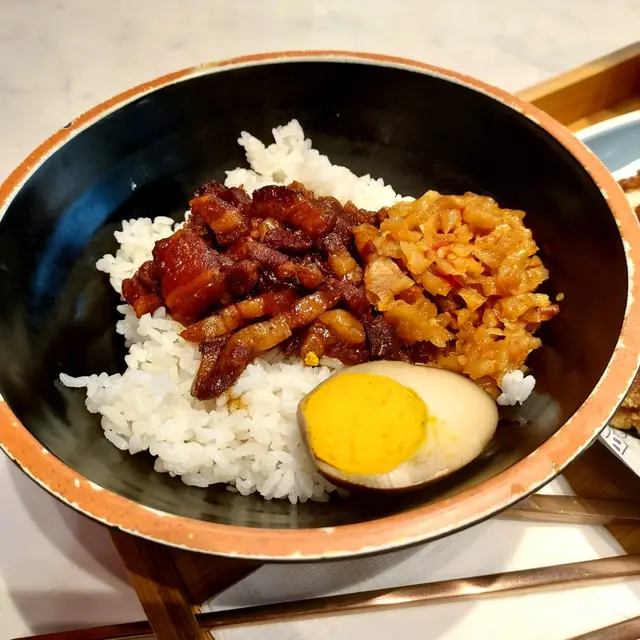 手掌咁大嘅雞扒 外皮粉漿炸得好酥脆香口👍內裏肉嫩juicy💦塔上脆口惹味菜脯 ➕️ 肥瘦適中滷肉撈版食💯