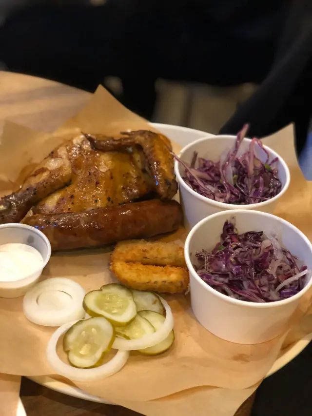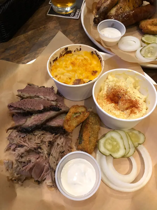 呢度嘅主打係美式煙燻肉 combo A一次過包含咗豬,牛,雞 腸 另外仲有蛋沙律、芝士通粉同埋椰菜絲加炸酸瓜 份量足夠 配埋啤酒食好夾