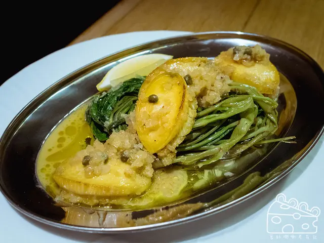 阿林💬:等候鮑魚牛油燒 ($198) 時,廚房傳來一波又一波蒜香,作為預演。品嚐過後,蒜蓉牛油果然超香,酒和香料調和了辛辣,buttery and flavourful。鮑魚飽滿,尚算彈牙,墊底的通菜盡吸醬汁精華,非常好吃。我略嫌菜梗過硬,擂沙則覺得沒問題。