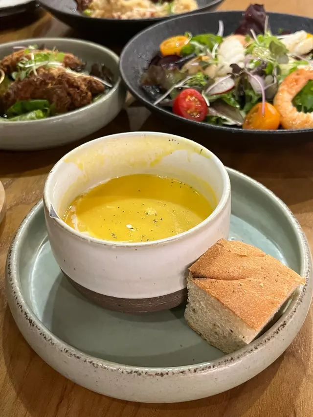 加埋$58就可以配是日餐湯🫕及自家製香草麵包🥖及任選飲品一杯(熱玫瑰花茶),真係好抵!