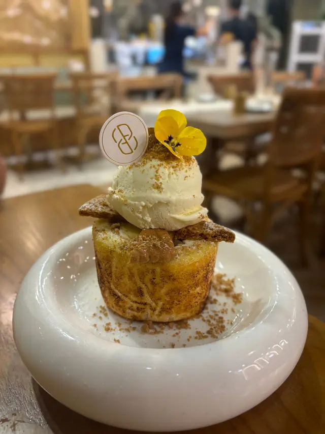金黃酥脆的蛋捲外皮顏色好誘人,入邊包著香甜的蘋果金寶,蛋捲頂部淋上了熱騰騰的焦糖醬,咬落去果陣,蘋果清甜同焦糖香濃混埋一齊,有豐富的層次感,配埋雲呢拿Mövenpick雪糕一流!